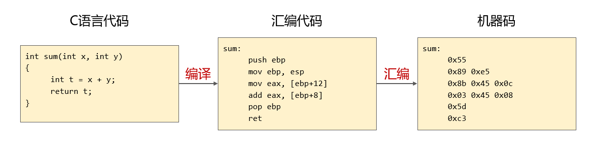 - 然后将基地址内存储的调用函数(caller)的基地址从栈内弹出,并存到 ebp 寄存器内。这样调用函数(caller)的 ebp(基地址)信息得以恢复。此时栈顶会指向返回地址。