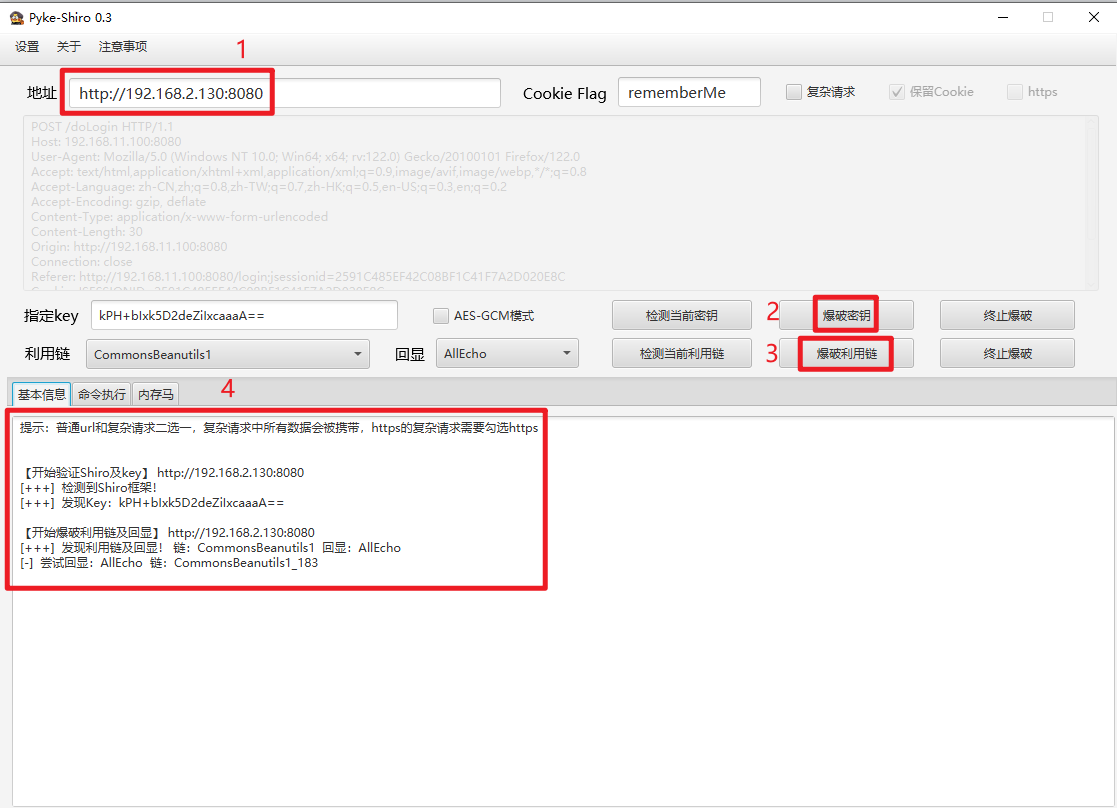 在shiro版本<=1.2.4中使用了默认密钥kPH+bIxk5D2deZiIxcaaaA==,这就更容易触发RCE漏洞。所以我们Payload产生的过程: