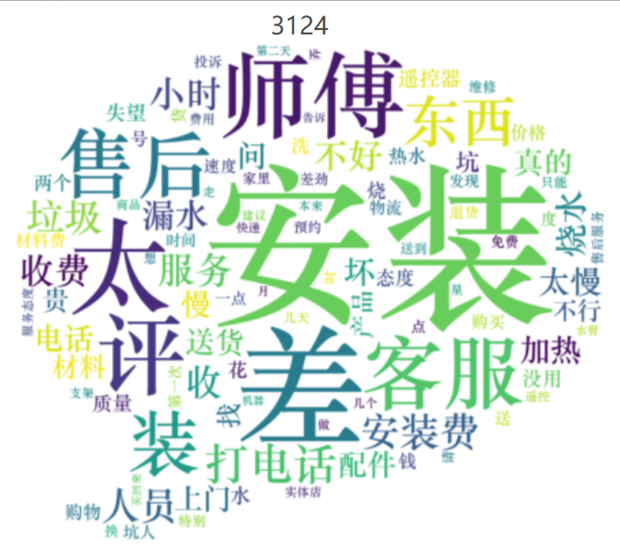 '0.075*"差" + 0.029*"师傅" + 0.024*"客服" + 0.024*"装" + 0.018*"加热" + 0.017*"打电话" + 0.015*"质量" + 0.012*"遥控" + 0.011*"坑人" + 0.008*"问"'),