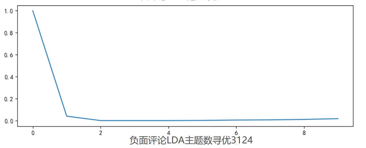 # 代码12-10 主题数寻优 # 构造主题数寻优函数 def cos(vector1, vector2): # 余弦相似度函数 dot_product = 0.0; normA = 0.0; normB = 0.0; for a,b in zip(vector1, vector2): dot_product += a*b normA += a**2 normB += b**2 if normA == 0.0 or normB==0.0: return(None) else: return(dot_product / ((normA*normB)**0.5)) # 主题数寻优 def lda_k(x_corpus, x_dict): # 初始化平均余弦相似度 mean_similarity = [] mean_similarity.append(1) # 循环生成主题并计算主题间相似度 for i in np.arange(2,11): lda = models.LdaModel(x_corpus, num_topics = i, id2word = x_dict) # LDA模型训练 for j in np.arange(i): term = lda.show_topics(num_words = 50) # 提取各主题词 top_word = [] for k in np.arange(i): top_word.append([''.join(re.findall('"(.*)"',i)) \ for i in term[k][1].split('+')]) # 列出所有词 # 构造词频向量 word = sum(top_word,[]) # 列出所有的词 unique_word = set(word) # 去除重复的词 # 构造主题词列表,行表示主题号,列表示各主题词 mat = [] for j in np.arange(i): top_w = top_word[j] mat.append(tuple([top_w.count(k) for k in unique_word])) p = list(itertools.permutations(list(np.arange(i)),2)) l = len(p) top_similarity = [0] for w in np.arange(l): vector1 = mat[p[w][0]] vector2 = mat[p[w][1]] top_similarity.append(cos(vector1, vector2)) # 计算平均余弦相似度 mean_similarity.append(sum(top_similarity)/l) return(mean_similarity) # 计算主题平均余弦相似度 pos_k = lda_k(pos_corpus, pos_dict) neg_k = lda_k(neg_corpus, neg_dict) # 绘制主题平均余弦相似度图形 from matplotlib.font_manager import FontProperties font = FontProperties(size=14) #解决中文显示问题 plt.rcParams['font.sans-serif']=['SimHei'] plt.rcParams['axes.unicode_minus'] = False fig = plt.figure(figsize=(10,8)) ax1 = fig.add_subplot(211) ax1.plot(pos_k) ax1.set_xlabel('正面评论LDA主题数寻优3124', fontproperties=font) ax2 = fig.add_subplot(212) ax2.plot(neg_k) ax2.set_xlabel('负面评论LDA主题数寻优3124', fontproperties=font)