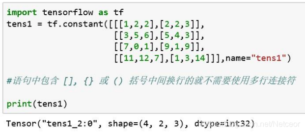 在TensorFlow中,所有的数据都通过张量的形式来表示。从功能的角度,张量可以简单理解为多维数组。且如上所说,张量并没有真正保存数字,它保存的是计算过程。