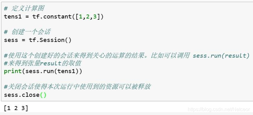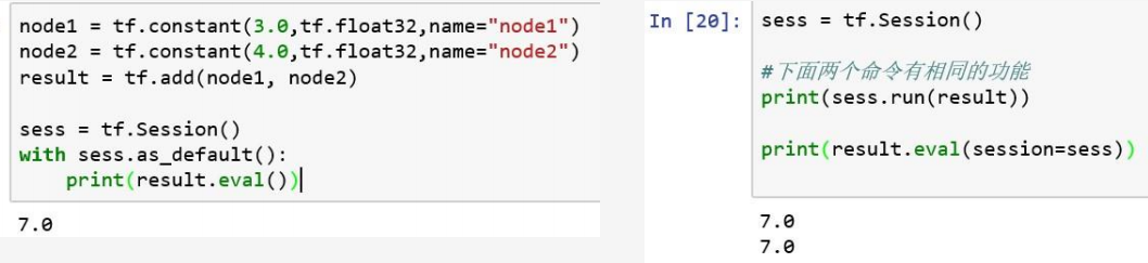TensorFlow不会自动生成默认的会话,需要手动指定 。当默认的会话被指定之后可以通过 tf.Tensor.eval 函数来计算一个张量的取值。
