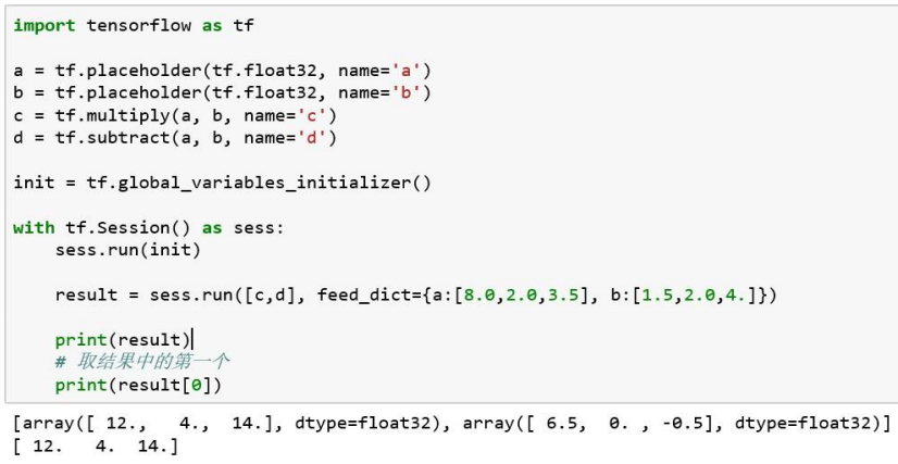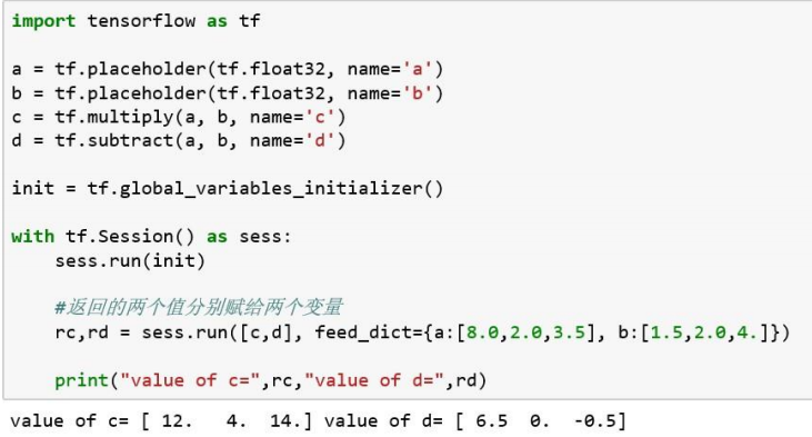 如果构建了一个包含placeholder操作的计算图,当在session中调用run方法时,placeholder占用的变量必须通过feed_dict参数传递进去,否则报错。多个操作可以通过一次Feed完成执行 (图右)