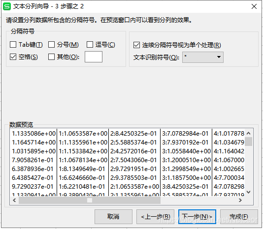 将数据复制进excel,选中第一列,数据->分列->分隔符号->空格,将数据进行分列。