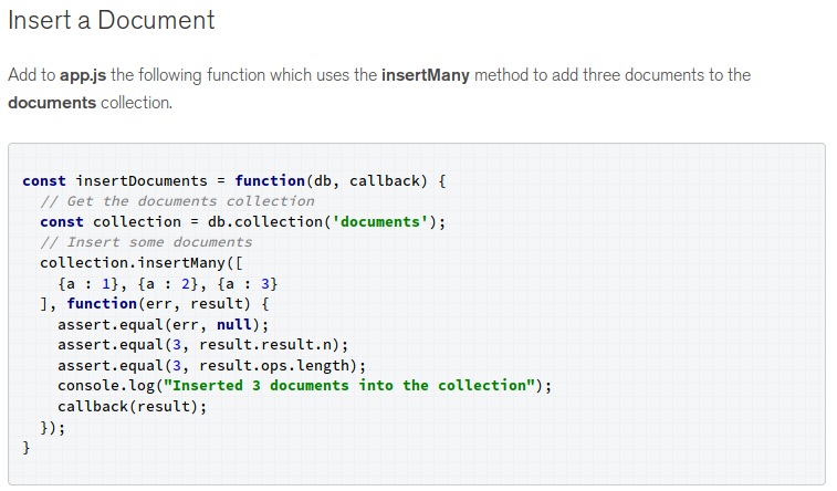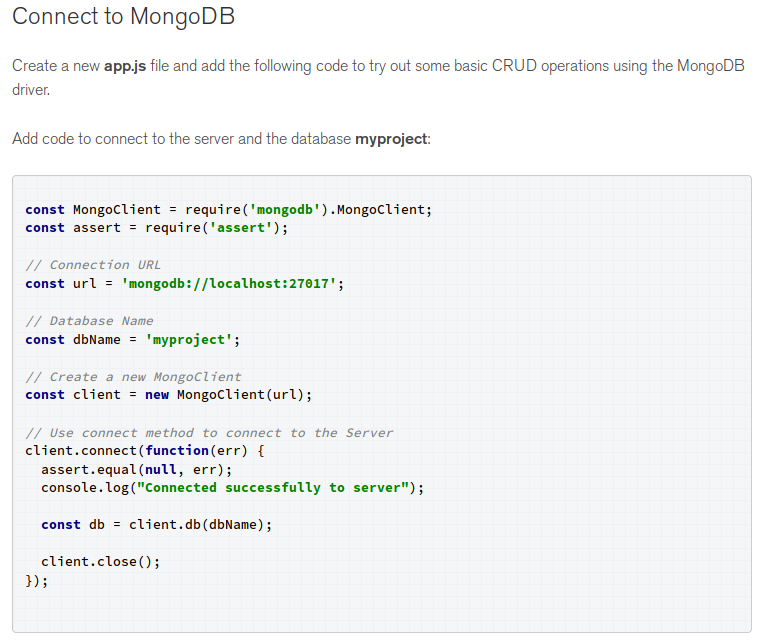 http://mongodb.github.io/node-mongodb-native/3.1/quick-start/quick-start/