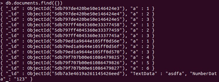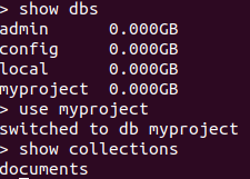 2.查看一些相关信息,其中myproject是我们创建的数据库,documents是我们进行操作的数据集