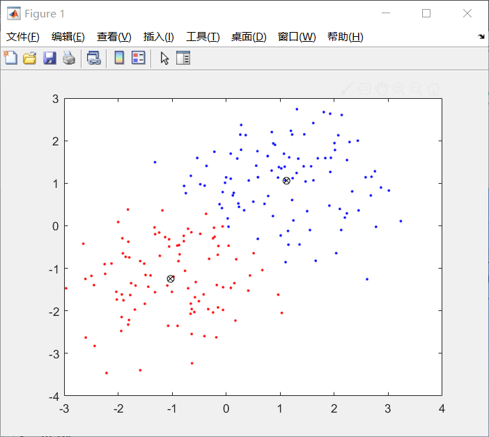 [idx,ctrs] = kmeans(X,2); %分二类,返回类别标号,类心坐标
