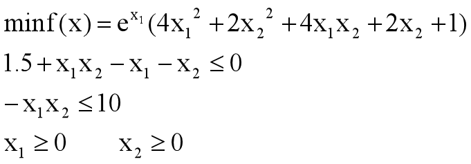 optf=@(x) exp(x(1))*(4*x(1)^2+2*x(2)^2+4*x(1)*x(2)+2*x(2)+1); %目标函数