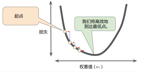 首先对权重w和偏差b进行初始猜测,然后反复调整这些猜测。直到获得损失可能最低的权重和偏差为止。