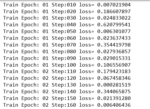 print("Train Epoch:",'%02d'% (epoch+1),"Step:%03d"%(step),"loss=",\