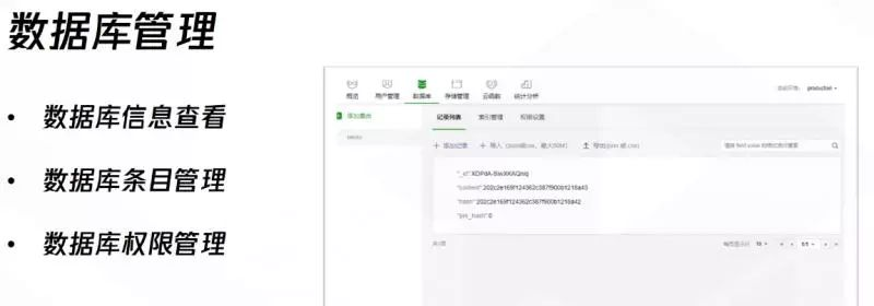 云数据库:一个既可以在小程序前端操作,也能在云函数中读写json数据库