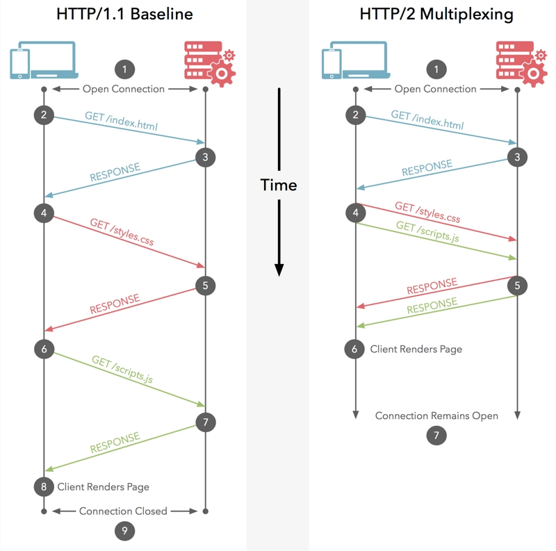 队头阻塞,大多数情况下,浏览器会希望同时获取许多资源,但http1未提供机制来同时请求这些资源,如果仅是使用一个连接,需要发起请求,等待响应,然后才能发起下一个请求。