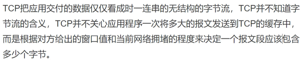 tcp是面向字节流,udp是面向报文的。UDP的数据传输是基于数据报的,TCP继承了IP层的特性,TCP为了维护状态,将一个个IP包变成了字节流。