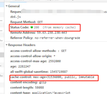 当浏览器去请求某个文件的时候,服务端就在response header里做了缓存的配置: