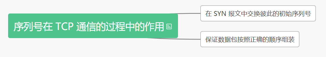 - 序号:Seq序号,占32位,标识从TCP源端口向目的端口发送的字节流,发起方发送数据时,对此进行标记