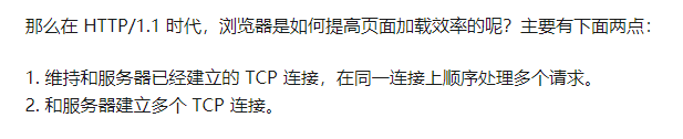 在 HTTP/1.0 中,一个服务器在发送完一个HTTP响应后,会断开TCP链接。但这样请求会重新建立和端口TCP连接,代价过大。