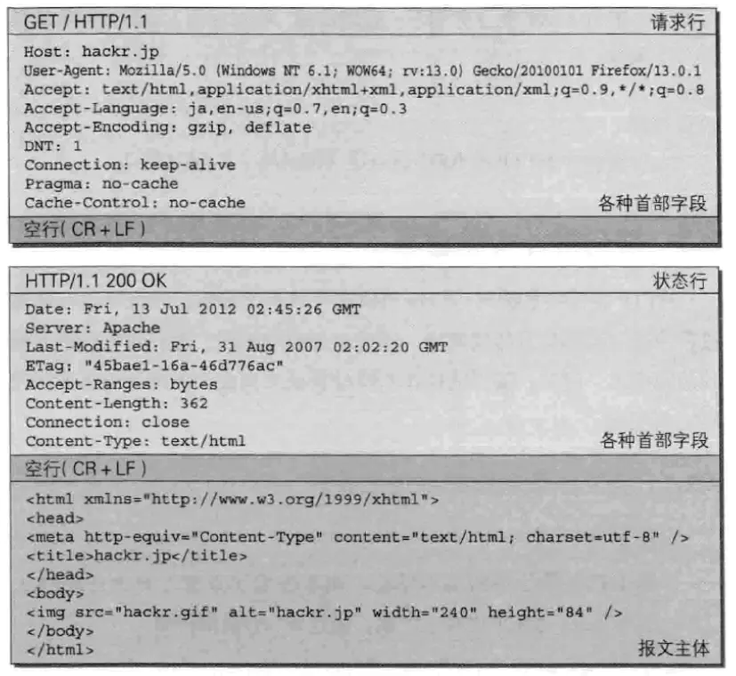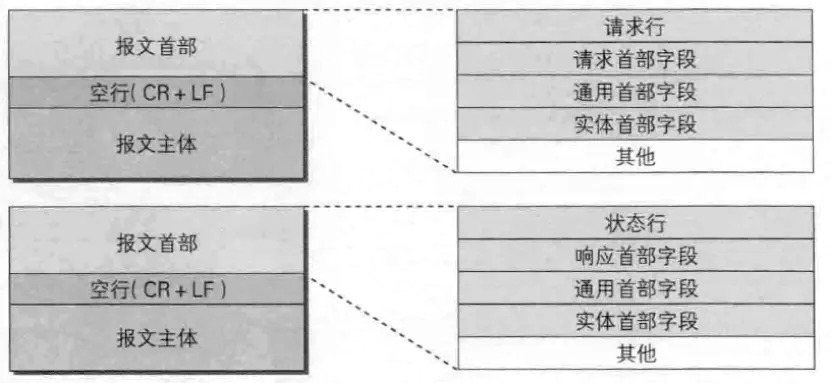 请求报文和响应报文的结构(找了如下图片进行解释)