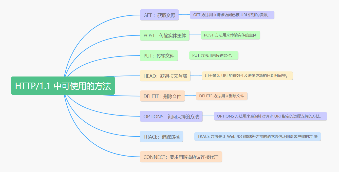 PUT方法更新资源,DELETE方法删除资源,HEAD方法获得报文首部