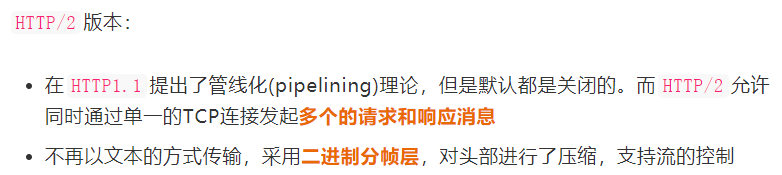 HTTP1.1版本,默认持久连接,只要没有明确提出端口就一直保持,可以发送多次HTTP请求,还有重点在于断点续传,利用HTTP消息头使用分块传输编码,将实体主体分块传输。