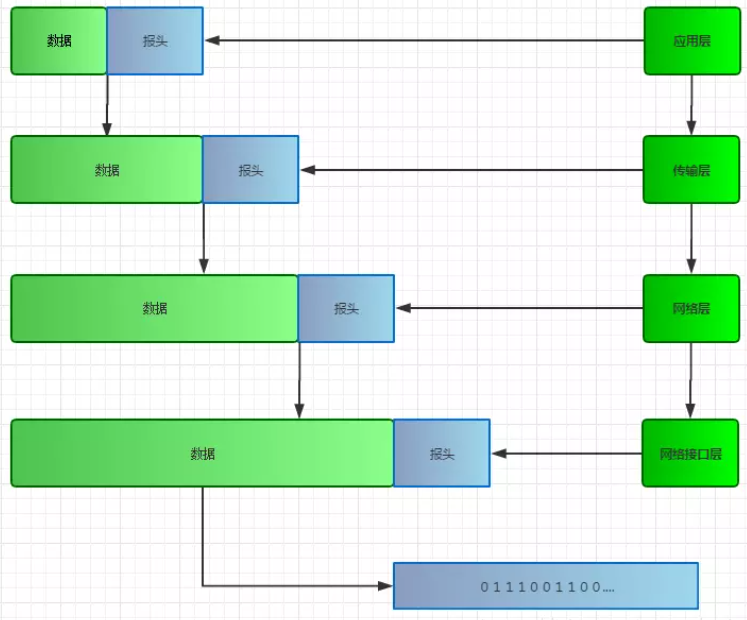 这个过程就是从应用层,传输层,网络层,链路层之间的传递。
