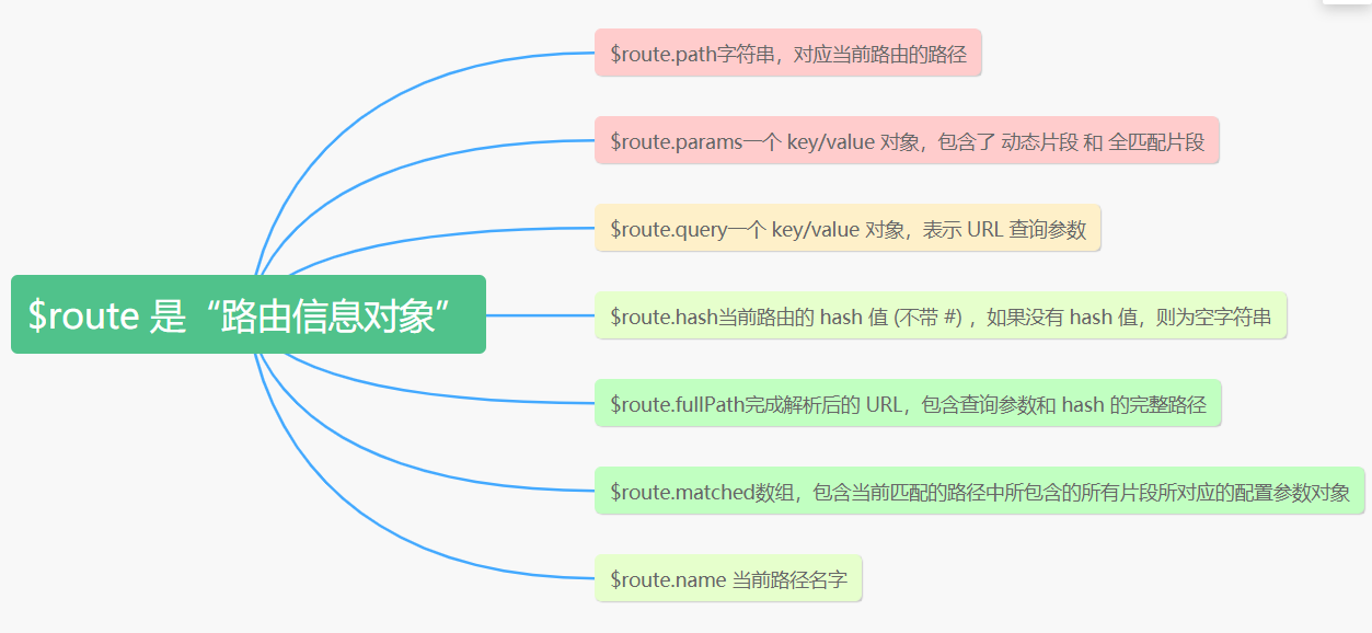 VueRouter中的动态路由匹配,可以在路由中设置多段“路径参数”,对应的值都会设置到$route.params中。