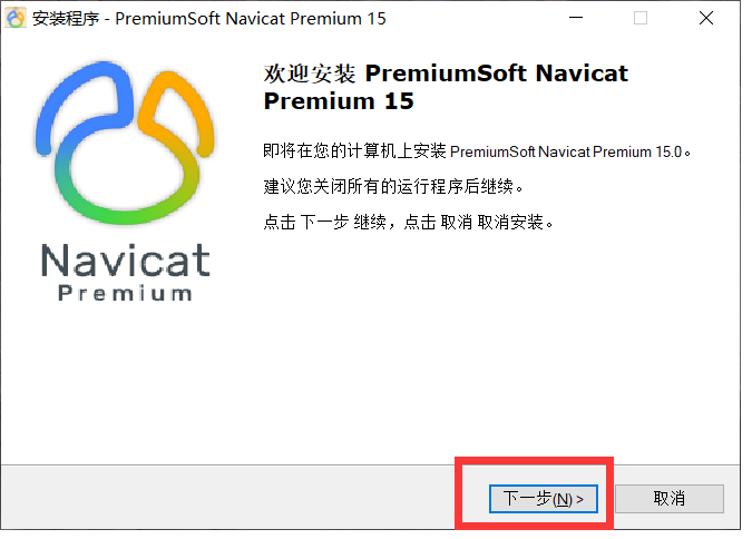 1.打开navicat150_premium_cs_x64.exe,点击“下一步”按钮。如下图: