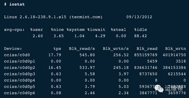 iostat 是收集和展示系统输入和输出存储设备统计的简单工具。这个工具通常用于查找存储设备性能问题,包括设备、本地磁盘、例如 NFS 远程磁盘。