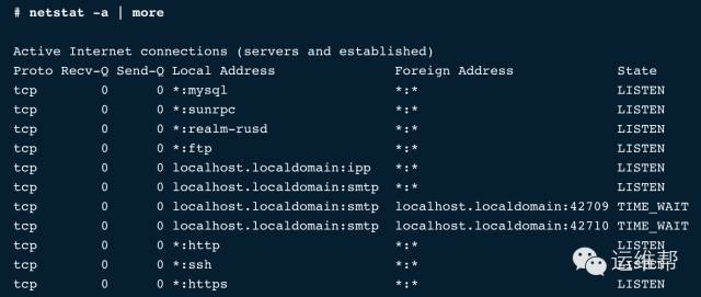 netstat 命令是一个监控网络数据包传入和传出的统计界面的命令行工具。它对于许多系统管理员去监控网络性能和解决网络相关问题是一个非常有用的工具。