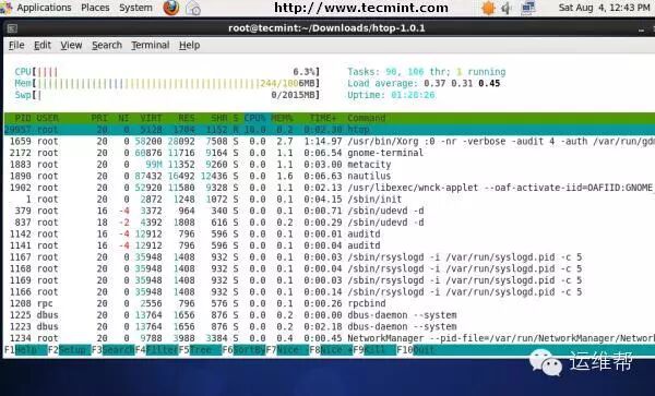htop 是一个更加先进的交互式的实时监控工具。htop 与 top 命令非常相似,但是他有一些非常丰富的功能,如用户友好界面管理进程、快捷键、横向和纵向进程等更多的。htop 是一个第三方工具并不包括在 Linux 系统中,你需要使用包管理工具进行安装。