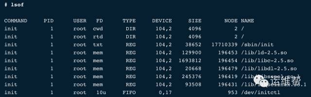 打开的文件主要包括磁盘文件、网络套接字、管道、设备和进程。使用这个命令的主要原因是一个一个盘不能卸载并且显示文件正在使用或者打开的错误信息。这个命令很容易看出哪些文件正在使用。这个命令最常用的格式: