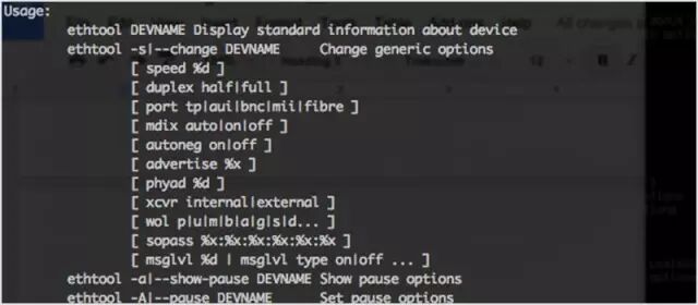 ethtool 用于显示和修改网络接口控制器的一些参数。它也可以用来诊断以太网设备,并获得更多的统计数据。