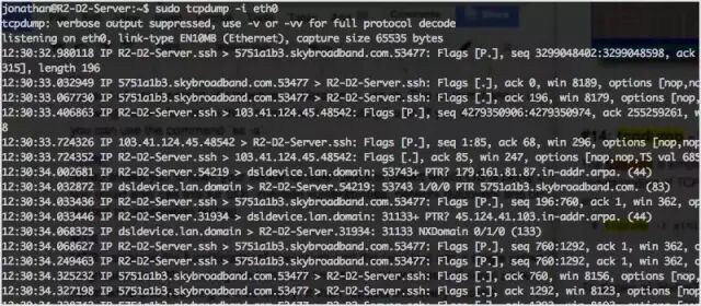 Tcpdump 将按照你在命令行中指定的表达式输出匹配捕获到的数据包的信息。你还可以将此数据保存并进一步分析。