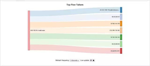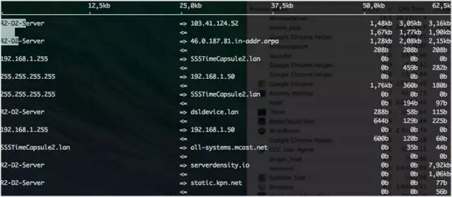 jnettop 以相同的方式来监测网络流量但比 iftop 更形象。它还支持自定义的文本输出,并能以友好的交互方式来深度分析日志。