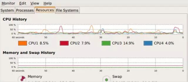 Gnome 系统监控器是一个基本的系统监控工具,其能通过一个树状结构来查看进程的依赖关系,能杀死进程及调整进程优先级,还能以图表形式显示所有服务器的指标。