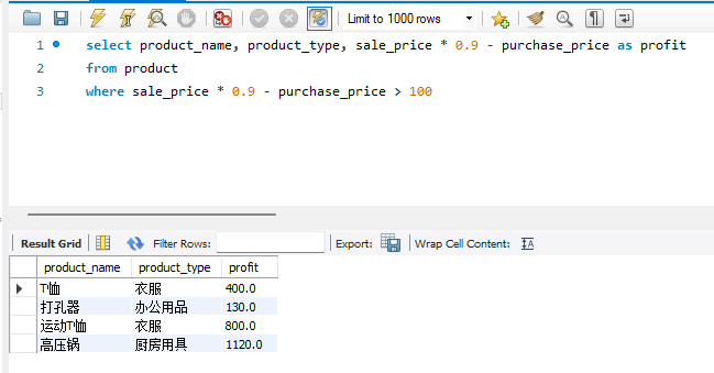 提示:销售单价打九折,可以通过 sale_price 列的值乘以0.9获得,利润可以通过该值减去 purchase_price 列的值获得。