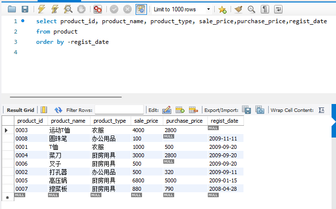 select product_id, product_name, product_type, sale_price,purchase_price,regist_date