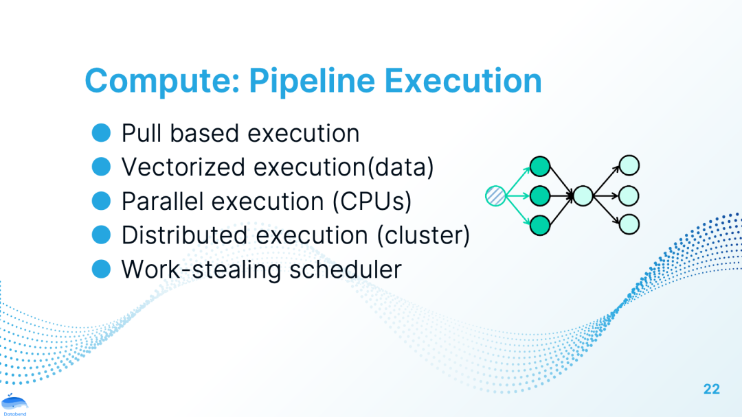 Databend的任务调度器采用work-stealing机制。每个节点、每个CPU都会从Databend的全局任务队列中取任务,一旦单个节点或CPU上没有处理的任务,就会从集群内队列中窃取任务,这样始终保持了节点和CPU的繁忙状态,不浪费计算资源。