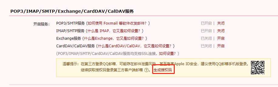 QQ邮箱这里有点小问题,我只开启第一个POP3/SMTP服务的时候,经常会自动关闭,但是开启了两个之后就没出现这个问题了。