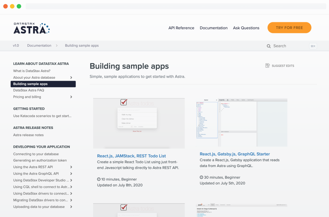 新上线的Astra示例程序库提供了基于多种编程语言和框架使用Astra的例子。借助这个示例程序库,你可以在短时间内建构起数据库、创建多个表、装载示例数据并部署基于Cassandra的应用程序。