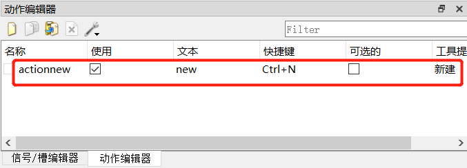 这两位置是对应的,在菜单栏中建立一个新的按钮就会在下面的action中增加一个action动作。
