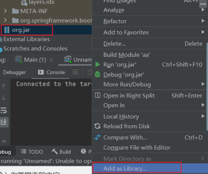 - 在新建的class文件中导入这个路径再调用这个main函数即可通过运行自己新建的class去运行jar包中的main函数