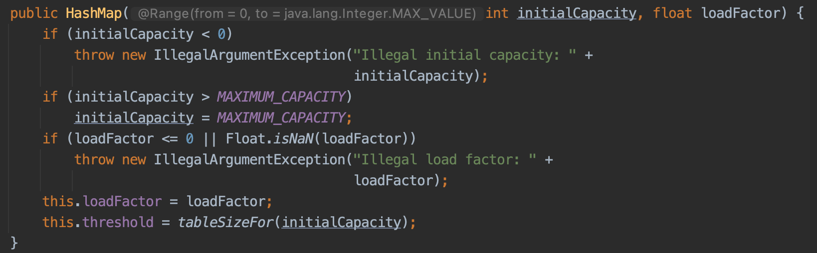 - threshold:扩容的阈值,等于 capacity * loadFactor