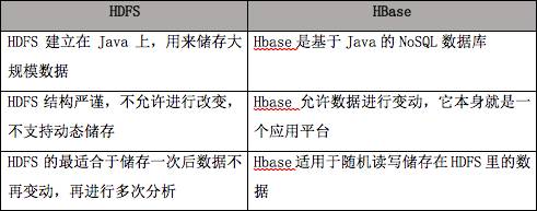 HDFS 和 HBase 比较表格