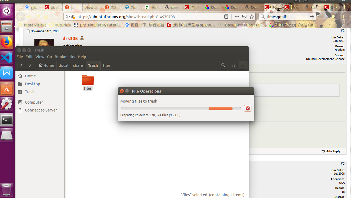 点进去Trash,吧里面两个文件夹直接删除即可。看看过程大概,我删了30多G,呵呵。。
