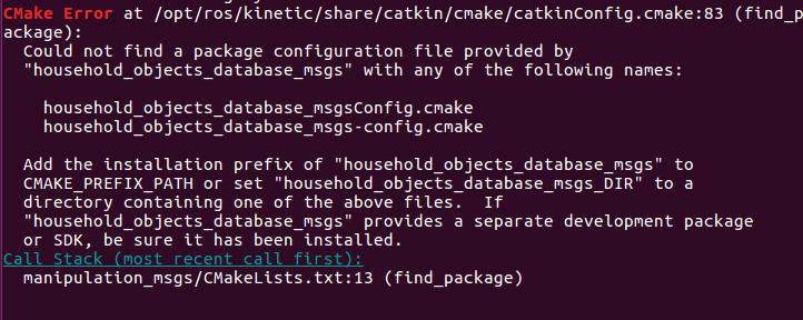 因为ROS by Exmaple2(ros进阶实例)是按照ros indigo版本来讲的,所以它的代码也是indigo版本的,对于代码在kinetic上的使用还需要一些依赖manipulation_msgs和household_msgs(操作和连接)