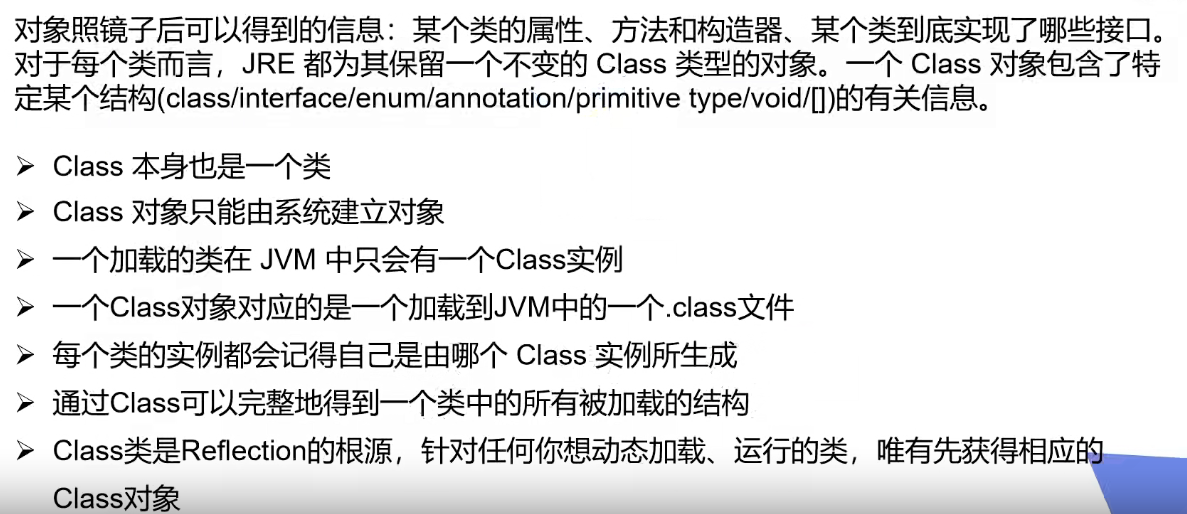 这个对象就像一面镜子,透过这个镜子看到累的结构所以我们形象的称之为:反射。