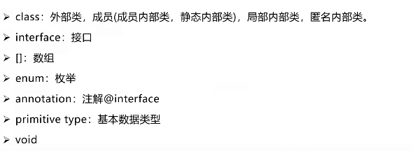 - 内置的基本数据类型可以直接用类名.Type来获取 。 例:Class c1=Integer.Type;