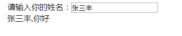 <html> <head> <title>入门小Demo-1 双向绑定</title> <script src="angular.min.js"></script> </head> <body ng-app> 请输入你的姓名:<input ng-model="myname"> <br> {{myname}},你好 </body> </html>