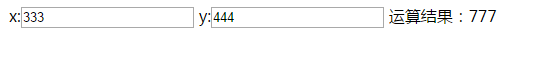 <html> <head> <title>入门小Demo-3 初始化</title> <script src="angular.min.js"></script> <script> var app=angular.module('myApp',[]); //定义了一个叫myApp的模块 //定义控制器 app.controller('myController',function($scope){ $scope.add=function(){ return parseInt($scope.x)+parseInt($scope.y); } }); </script> </head> <body ng-app="myApp" ng-controller="myController"> x:<input ng-model="x" > y:<input ng-model="y" > 运算结果:{{add()}} </body> </html>