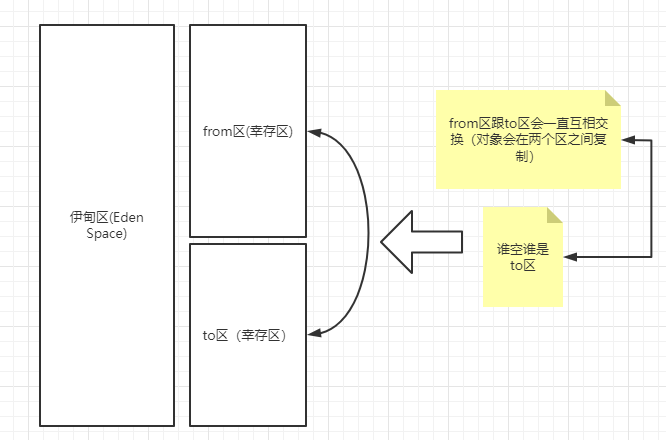由于幸存区的对象在重GC后也会进入养老区,估from区跟to区会互相交换。